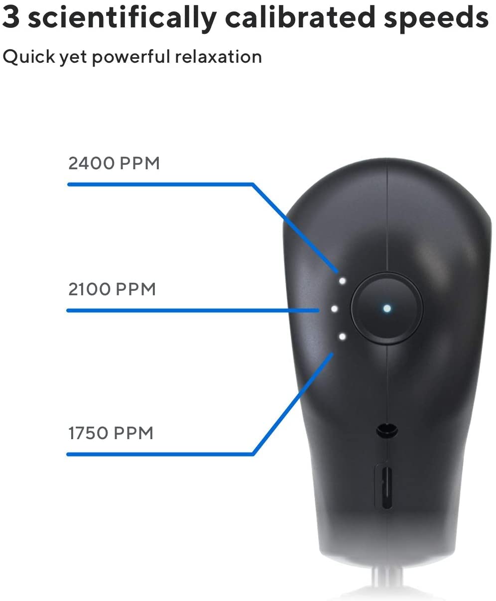 3 CALIBRATED SPEEDS – with 1750, 2100, and 2400 percussions per minute, each scientifically calibrated to deliver greater therapeutic benefits for the body.